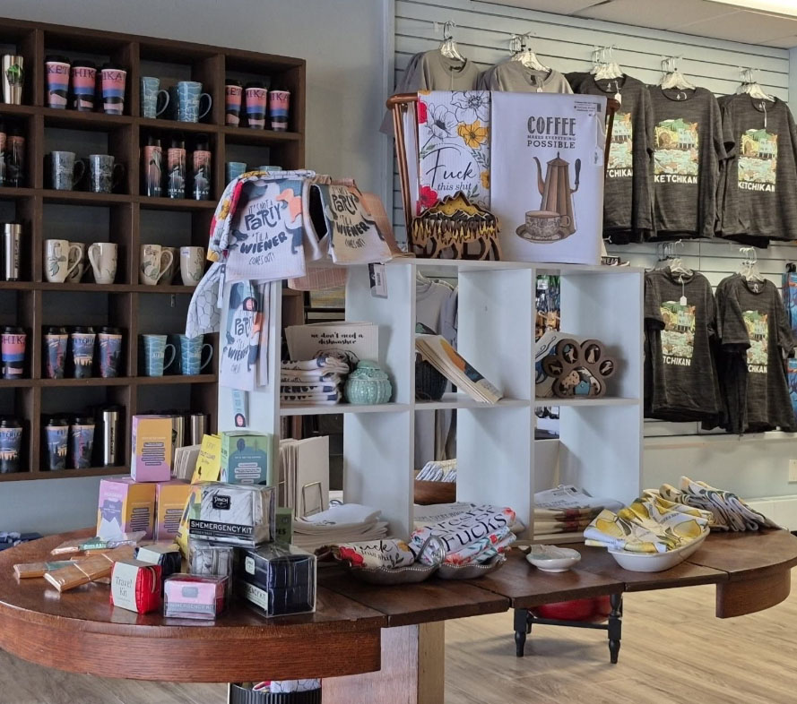 Tasty sandwiches made with Chompie’s bagels. Hot or iced coffee, frappe or iced tea made to order by our baristas. Fresh baked goods made daily. Unique treasures to gift; some made in Alaska and by local artists.